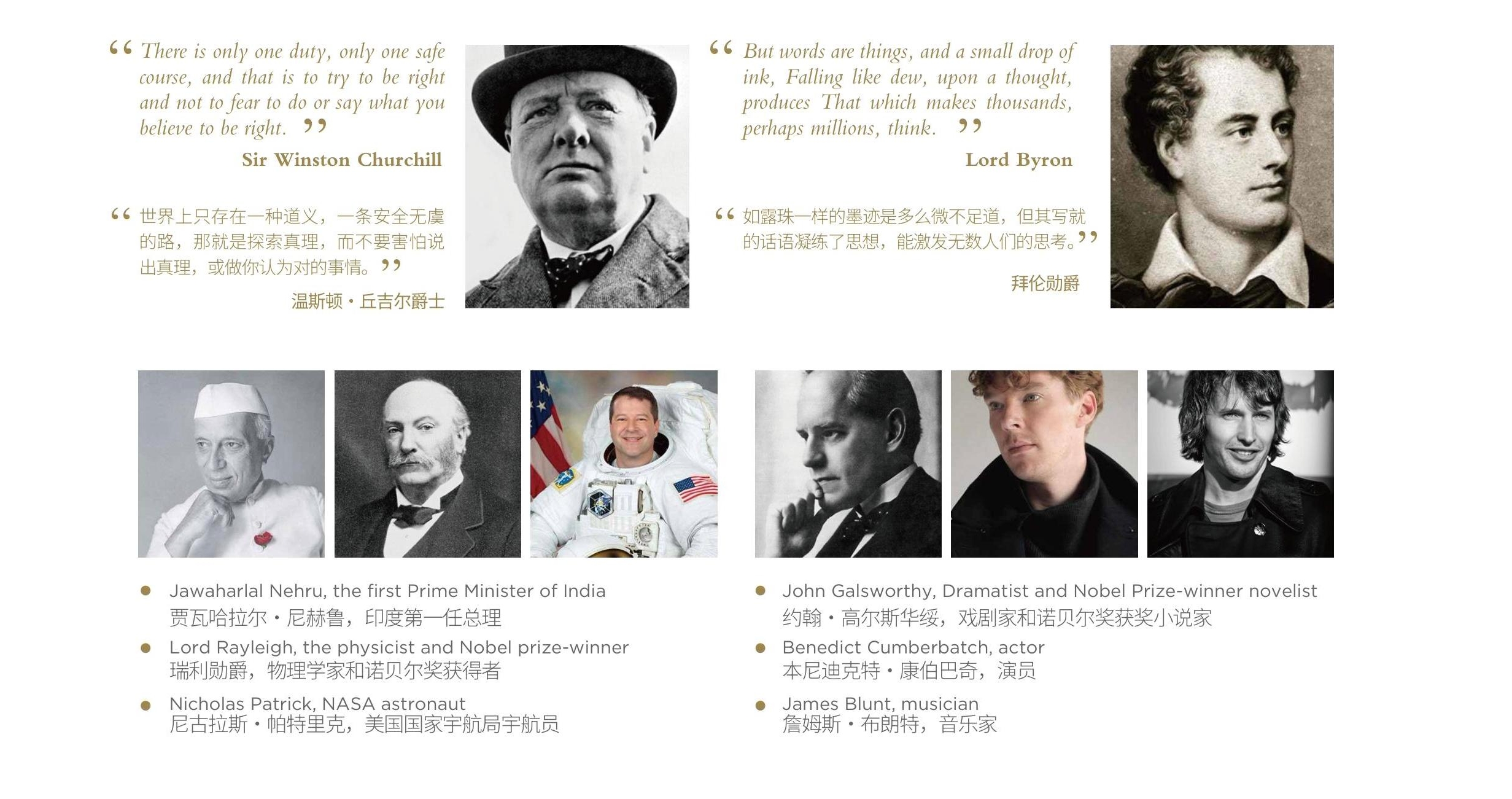 Harrow School in London has been home to world leaders, poets and royalty. It has educated such inspirational characters as Sir Winston Churchill, King Hussein of Jordan, Jawaharlal Nehru, Lord Byron, and more recently actor Benedict Cumberbatch.