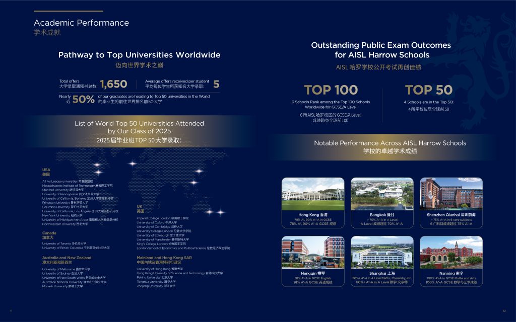 Over the years we have built an exceptional track record of successes in university placement, based on outstanding grades and bespoke counselling support. AISL Harrow Schools are positioned at the top of all international schools globally with excellent public exam outcomes in the Class of 2025.​